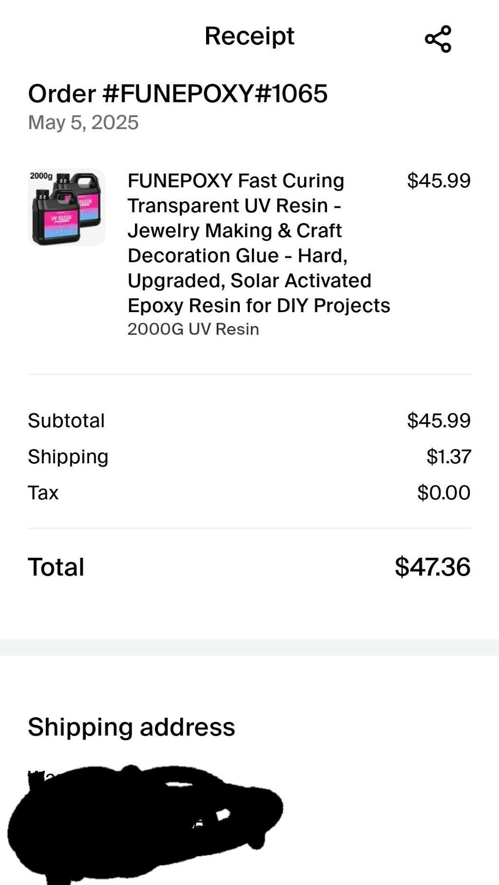 I ordered the largest bottle of UV Resin & I received the wrong size bottle (smallest) I sent an email the same day; no response. Sent a followup email, no response. I sent 2 messages directly from the website, no response. I sent another email after that, no response. There's no phone number available to call so I'm left with less product than I paid for. I dont like leaving bad reviews however I'm hoping this will be seen & I'll get contacted and this gets made right. Then, I'll delete the review.